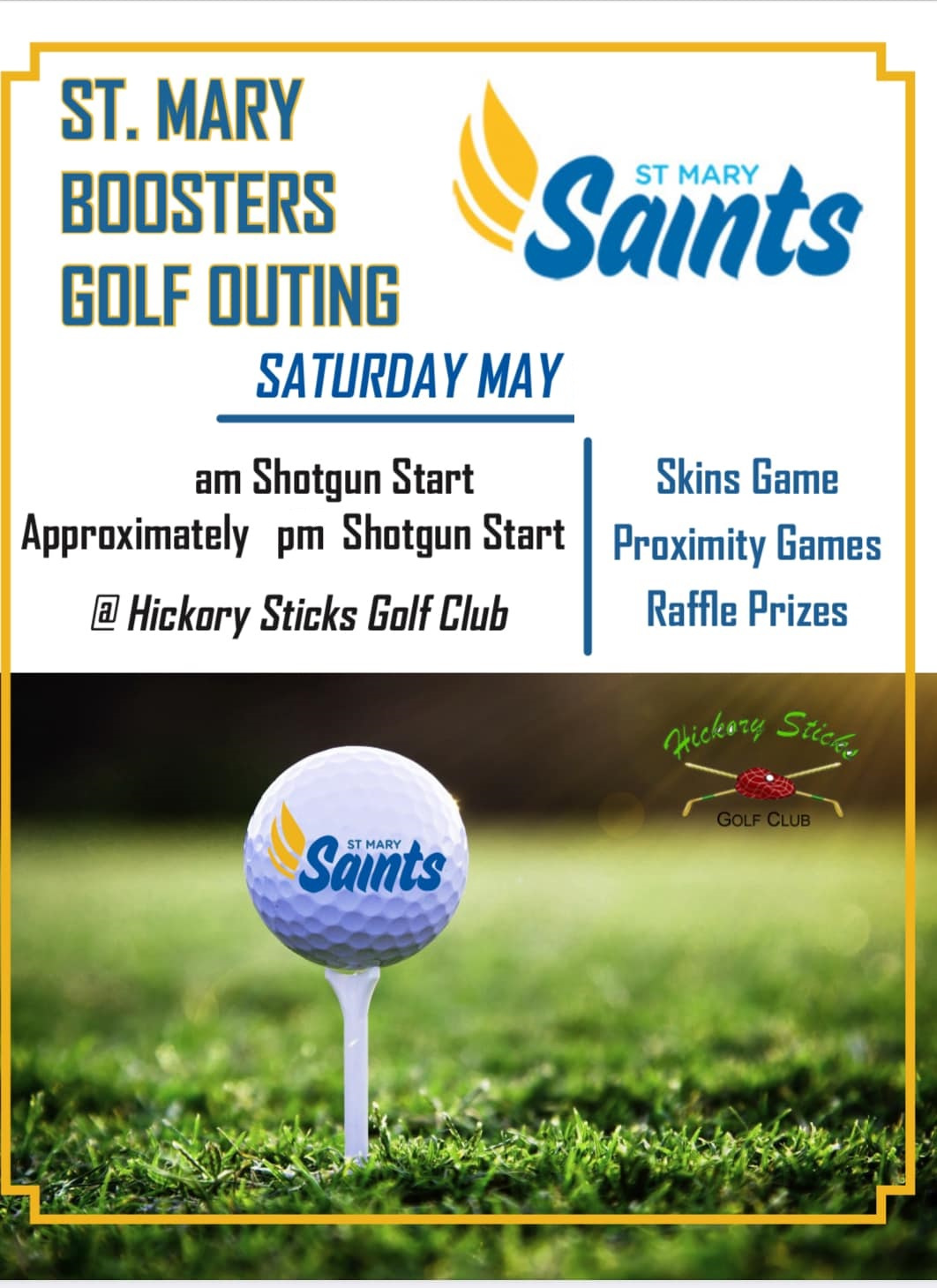 Join us in May for the annual Saint Mary Golf Outing! This exciting event features a shotgun start with rounds in the morning and afternoon. Enjoy a day on the course with raffles, split the pot, and a delicious lunch. It's a fantastic opportunity to support our school while having a great time with friends and fellow golf enthusiasts.